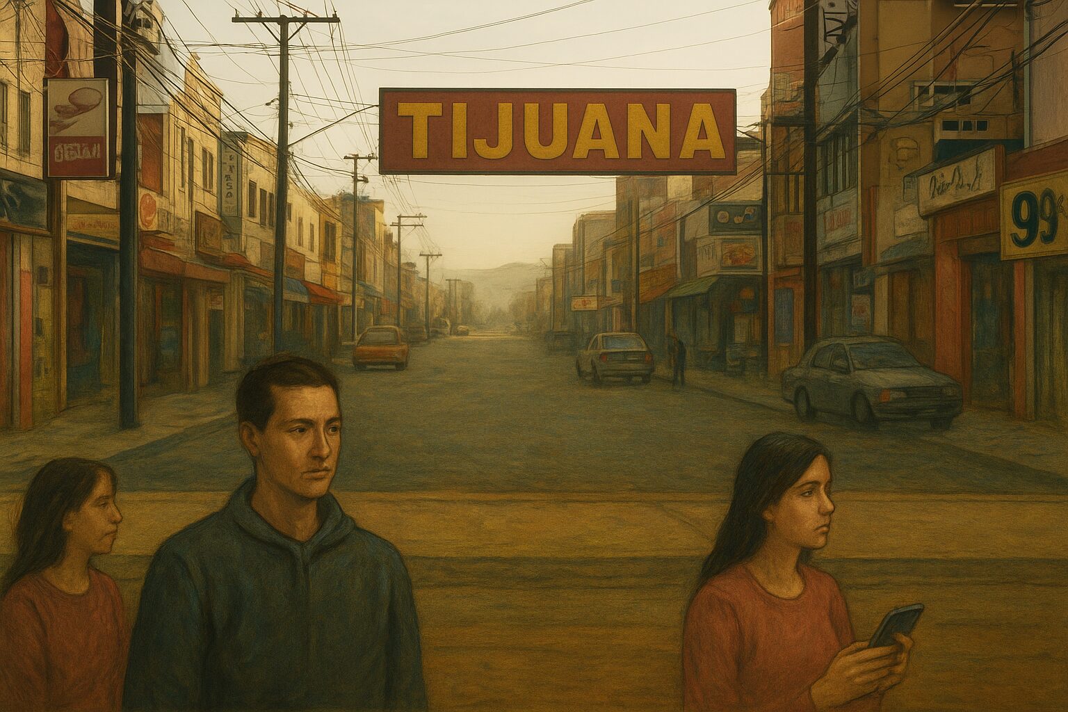 Sobre un pasillo que entra a un edificio, tres metros después de la entrada principal se alcanza a ver a una mujer abrirse el abrigo y mostrar algo a un hombre parado frente a ella. La escena transcurre sobre avenida Revolución. Son las 12 del día y los antros siguen abiertos; la poca gente que pasa sobre esa importante avenida que parte en dos a la ciudad fronteriza de Tijuana escucha la música que sale de las rockolas, el chocar de vasos y botellas y los gritos escandalosos de los borrachos que no saben de amanecer alguno. En las vidrieras de los bares escurre el sudor de esos cuerpos que nunca se fueron y que toda la noche se juraron una vida eterna una vida que para ellos no significaba ningún engaño, ningún juego. El olor a fritangas y menudo sale por las puertas. Los borrachos, crudos y demás se preparan para departir alimentos caldosos y picantes con los que, según confían, matarán esa cruda intensa que les dejó la libación de más de doce horas seguidas. Se escucha el ruido de platos que va y viene de mesa en mesa; los borrachos piden más cerveza para detener la angustia de su realidad que está a punto de alcanzarlos. Nadie quiere ir a casa, al trabajo u obligaciones diversas. Está es su realidad y la prefieren, no le hace que pronto los alcance otra vez la oscuridad de otra noche intensa. Están acostumbrados a ello y ahora solo esperan entrarle a la panza caldosa y su picante intenso que les hará sacar la cruda hasta por las orejas. ¡Negra, échame ya un plato…!, grita un hombre con la cerveza en la mano. La mujer aludida le grita ¡espera carajo, ya va la comida…!