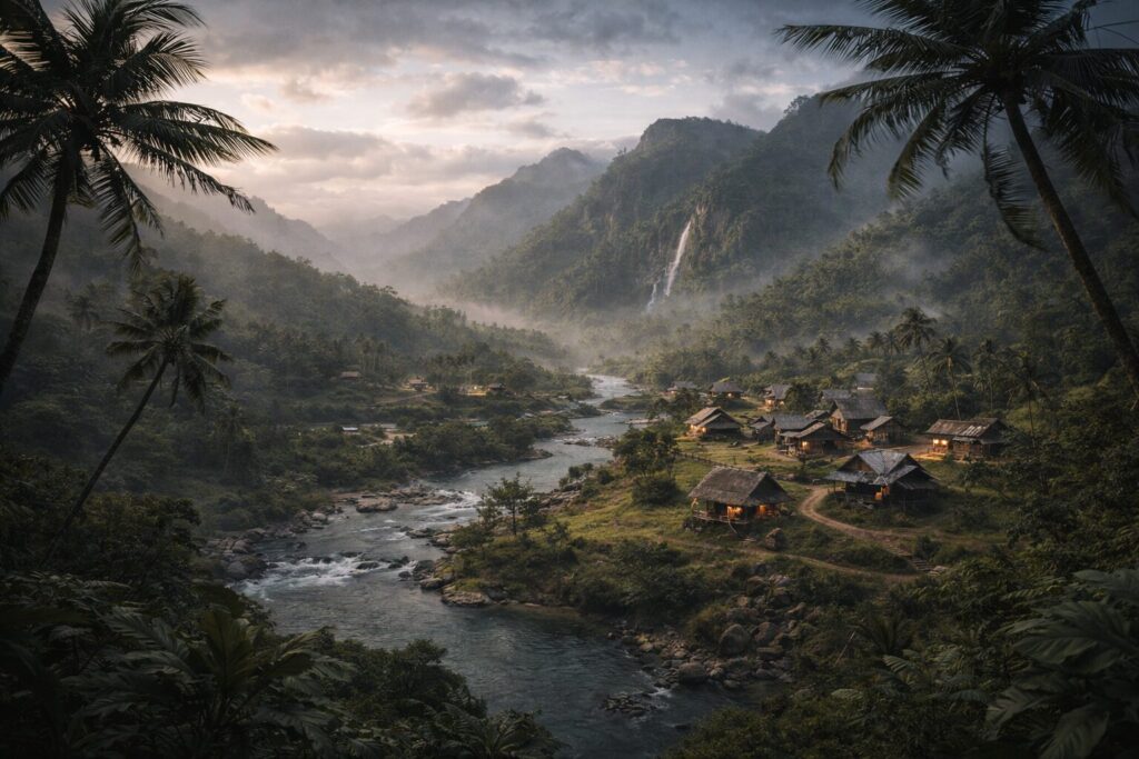 caseríos tragados por la marea,